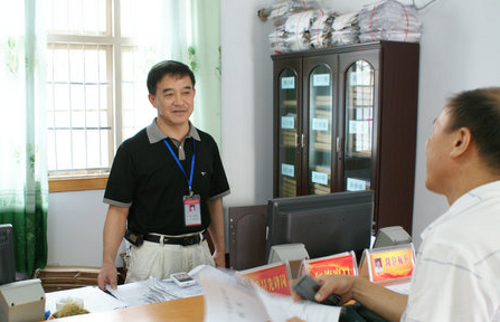 肖调安来窗口工作之前一直在乡镇工作,也一直住在乡镇,离县城有1个多小时的车程,但他克服了重重困难,每天早上6点钟准时起床,8点钟就赶到了窗口,比中心实行的“朝九晚五”作息时间提前了一个小时。他在中心取了窗口代办需审批的资料,马上赶赴局里,找相关领导审核签字,充分利用早上易于找到领导的时机。肖调安总是这样,一切从工作出发,不断克服各种困难,扎实把窗口工作开展起来,同时严格遵守中心的各项规章制度,做到准时上下班指纹签到、挂牌佩党徽上岗和落实首问责任制等办件制度,切实做到廉洁自律,不以权谋私,不搞暗箱操作,带领窗口其他几位工作人员争创中心的模范红旗窗口。
