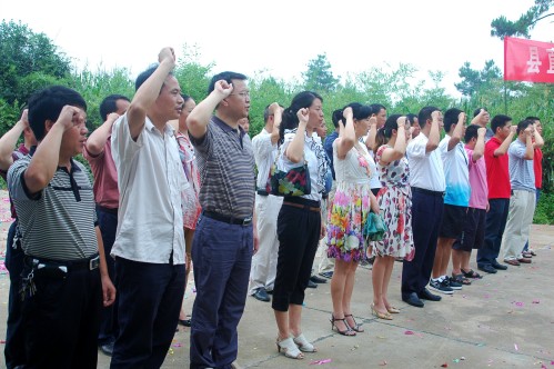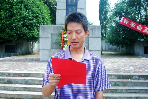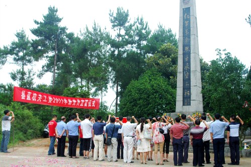 仪式上,新党员们向红军烈士默哀、鞠躬,为红军烈士敬献花篮,并在烈士墓前面对鲜艳的党旗高举右手庄严宣誓。