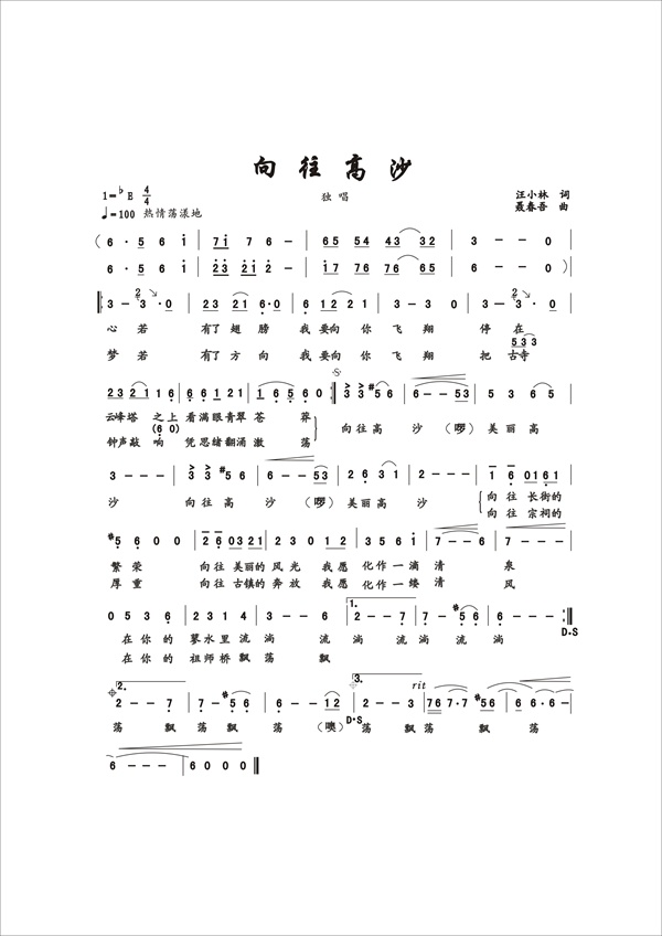 歌谱:向往高沙