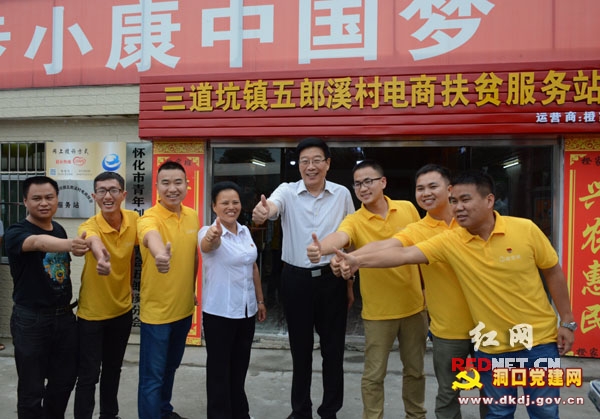 徐守盛为村里的电商扶贫服务站点赞